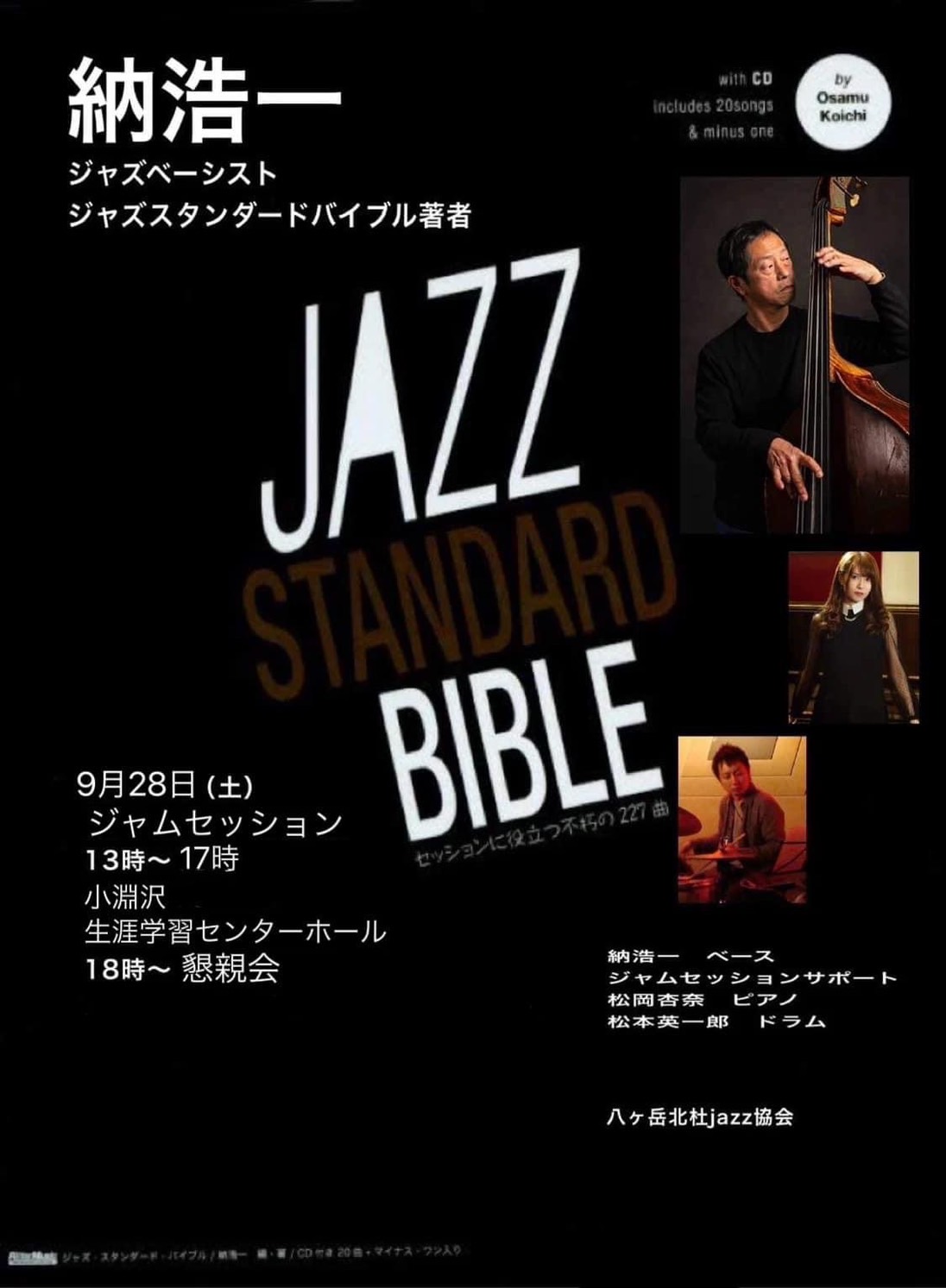 9月28日(土)ジャムセッション13時〜17時小淵沢生涯学習センターホール