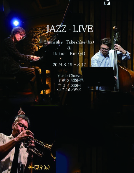 ジャズライブ 武重俊輔&ハクエイキムwith中村恵介