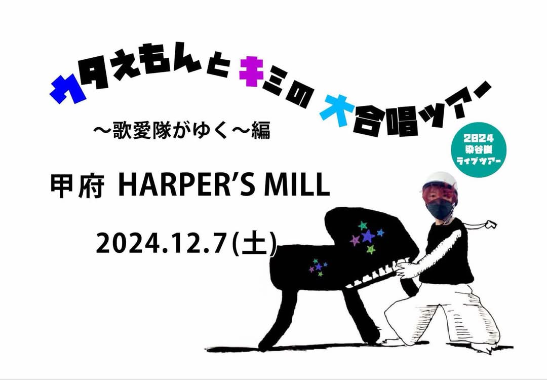 日時:2024年12月7日(土) �場所:甲府HARPER’S MILL�開場/15:30 開演/16:00�前売/¥4500�(ワンドリンク別) �当日/¥5000�(ワンドリンク別)