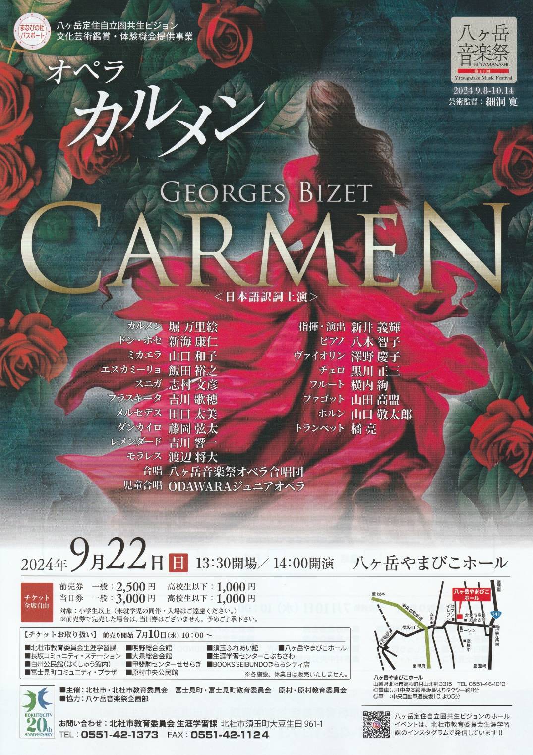 2024年9月22日(日)14:00開演 八ヶ岳やまびこホール ジョルジュ・ビゼー:「カルメン」 指揮:新井義輝 合唱指導:前原加奈 練習ピアノ:海野綾子 出演者: カルメン:堀万里絵 ...