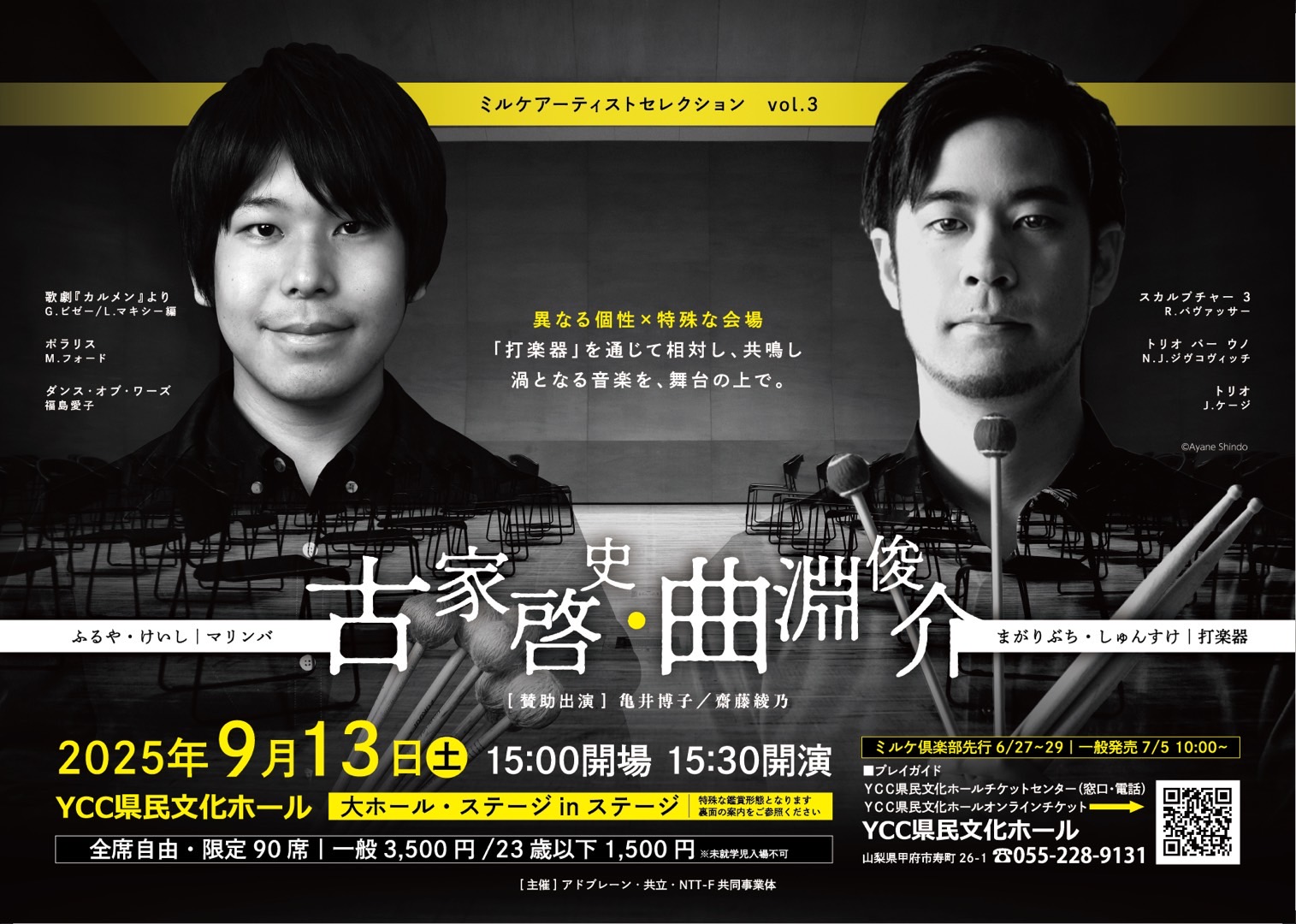 イベント年月日 : 2025-09-13 開場時間 : 15:00 開演時間 : 15:30 終演時間 : 17:30 開催場所 : YCC県民文化ホール 大ホール ステージinステージ 入場料 : 全席自由・限定90席...