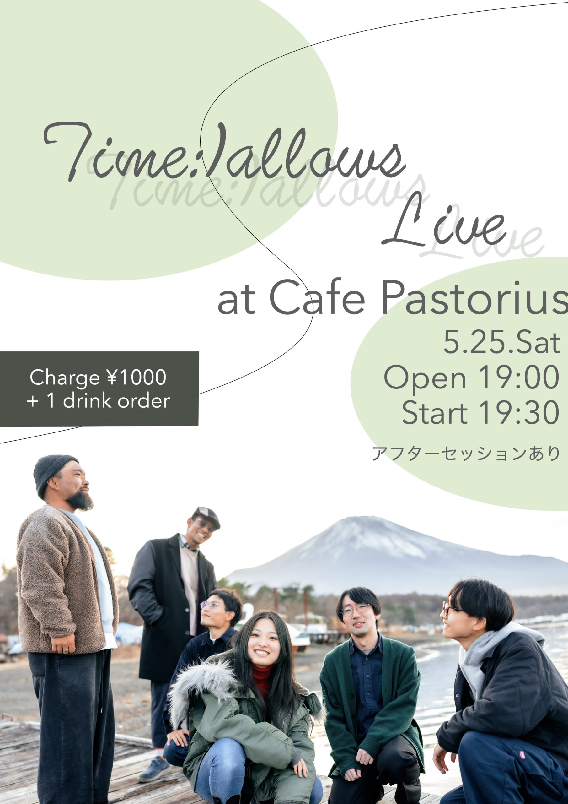 出演 time:)allows open19:00 start 19:30 入場料 : ¥1000+1drink LIVE後アフターセッションあります。 是非ご参加を!