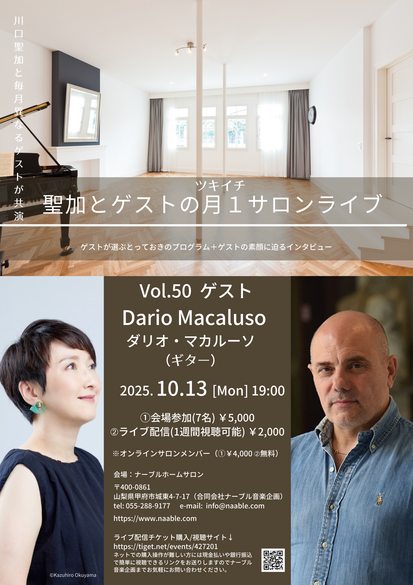 出演: ダリオ・マカルーソ(ギター) 川口 聖加(ソプラノ) 2025年10月13日(月祝) 19時開演(18時50分開場) 会場: ナーブルホームサロン 〒400-0861 山梨県甲府市城東4-7-17(合同会社ナー... |